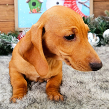 I’m Aria! I’m a 12-week-old female Dachshund with a beautiful red coat, born on September 12, which makes me a Virgo pup. I am ready now to plan my trip to my forever family. I’m UABR registered. Everyone loves to pet me, and I don’t mind at all! I can lay there for hours soaking up every bit of affection.