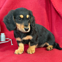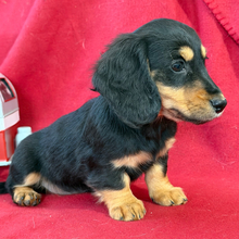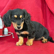 I’m Ella! I’m a 9-week-old female Dachshund with a beautiful black & tan coat, born on September 30, which makes me a Libra sign. I’ll be ready to go home to my forever family after November 25, once I’m grown enough to leave my litter. I’m AKC registered. I can’t wait to make your home my forever playground.