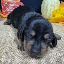 I’m Tank! I’m a 5-week-old male Dachshund with a beautiful black & tan coat, born on October 29, which makes me a Scorpio sign. I’ll be ready to go home to my forever family after December 24, once I’m grown enough to leave my litter. I’m ACA registered. I’m dreaming of belly rubs and cozy snuggles with you.